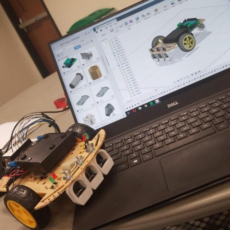 Placed in a team of 3, we were given the task to create a demonstration-ready line follower in just under 4 weeks. The resulting line follower had to navigate courses of increasing complexity in a set amount of time with elements such as intersections that required much iteration. I was assigned the task of the line follwer's electronics - including both the physical hardware connections to the board and the code (in C) as well as the fabrication of some of the components due to my familiarity with 3D printing and laser cutting. As an addition, I added bluetooth connectivity to start the line follower from any compatible device.